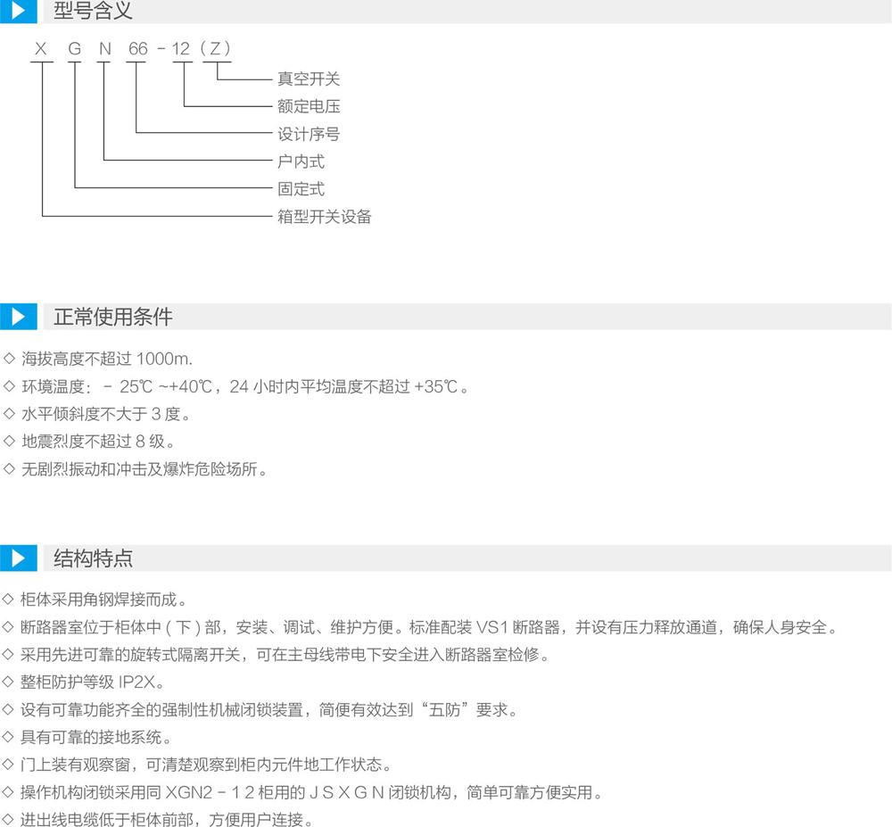 XGN66-12系列10kV固定式開關(guān)柜配用了高開斷能力和低截流值的VS1真空斷路器或VD4等合資、外資品牌真空斷路器,滿足“五防”聯(lián)鎖功能,是一種性能優(yōu)越的配電裝置。用于各種居住小區(qū)、發(fā)電廠、中小型發(fā)電機(jī)送電、工礦企事業(yè)單位配電以及電業(yè)系統(tǒng)二次變電所的受電、配送電及大型高壓電動(dòng)機(jī)啟動(dòng)等。